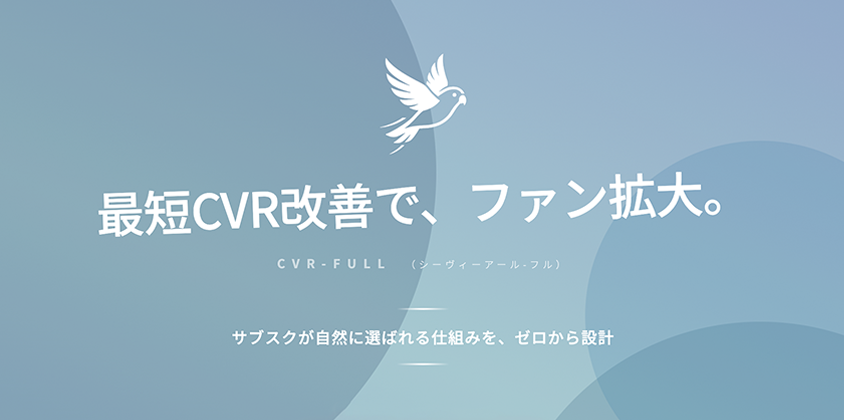 CVR-FULLは、D2C企業向けにLP・EC・広告・SNSの全体最適化を行い、サブスクリプションのコンバージョン率(CVR)を最大化するサービスです。集客から販売までを包括的にサポートしています。
